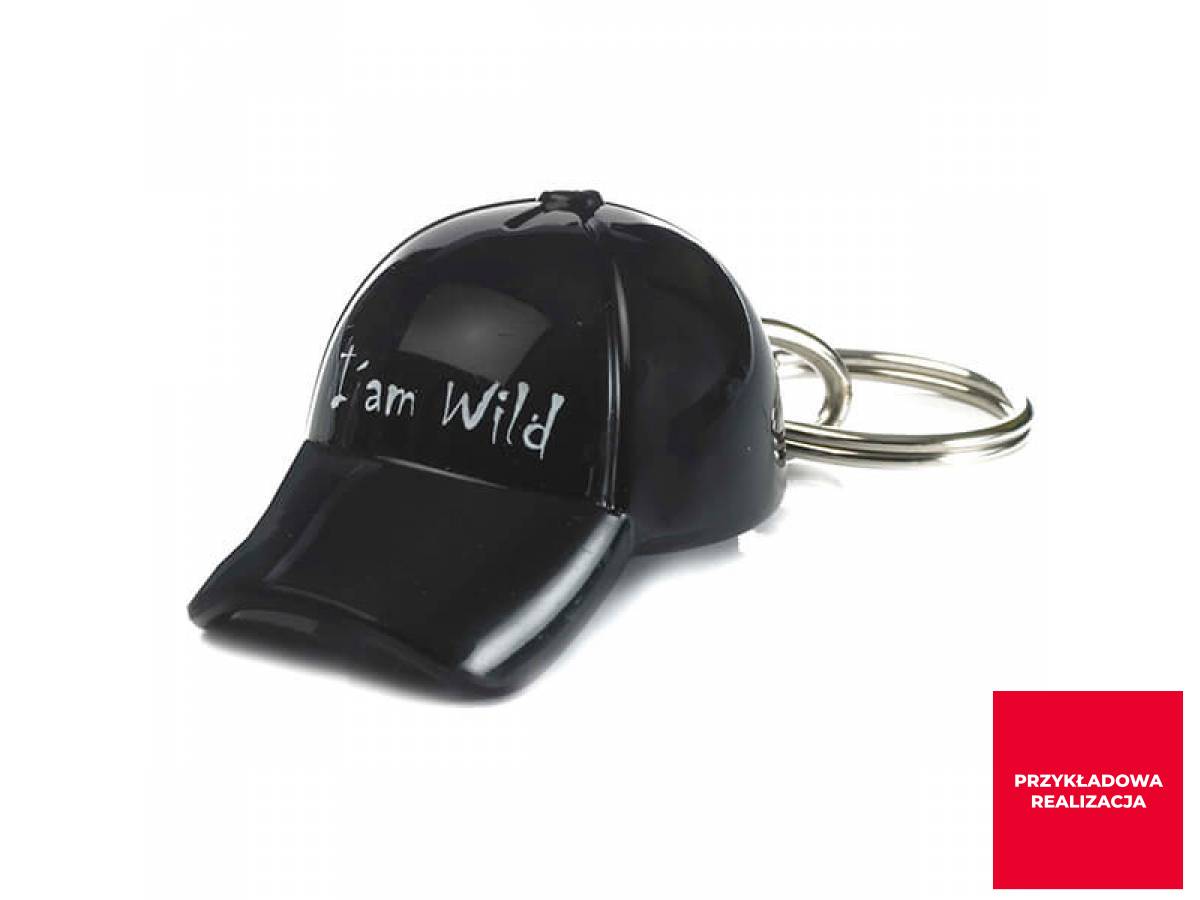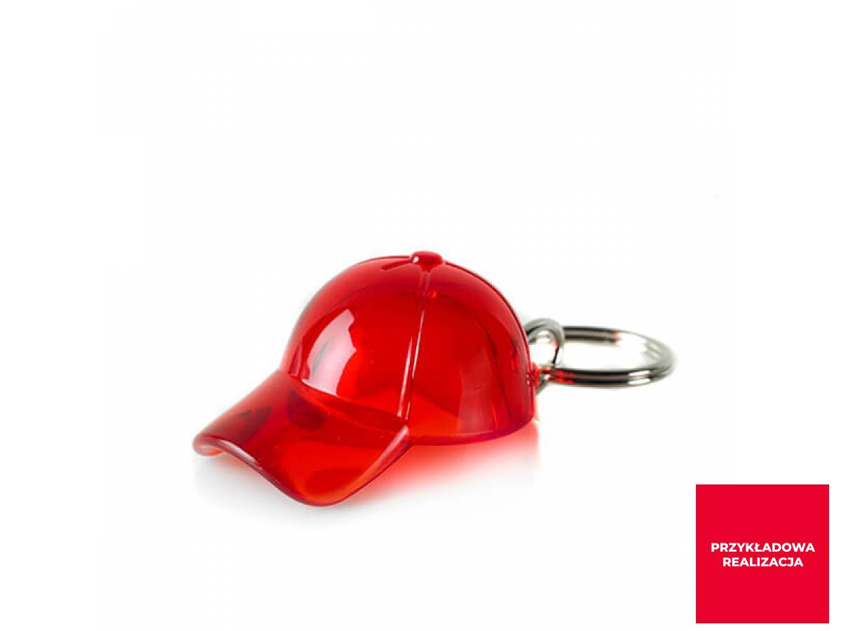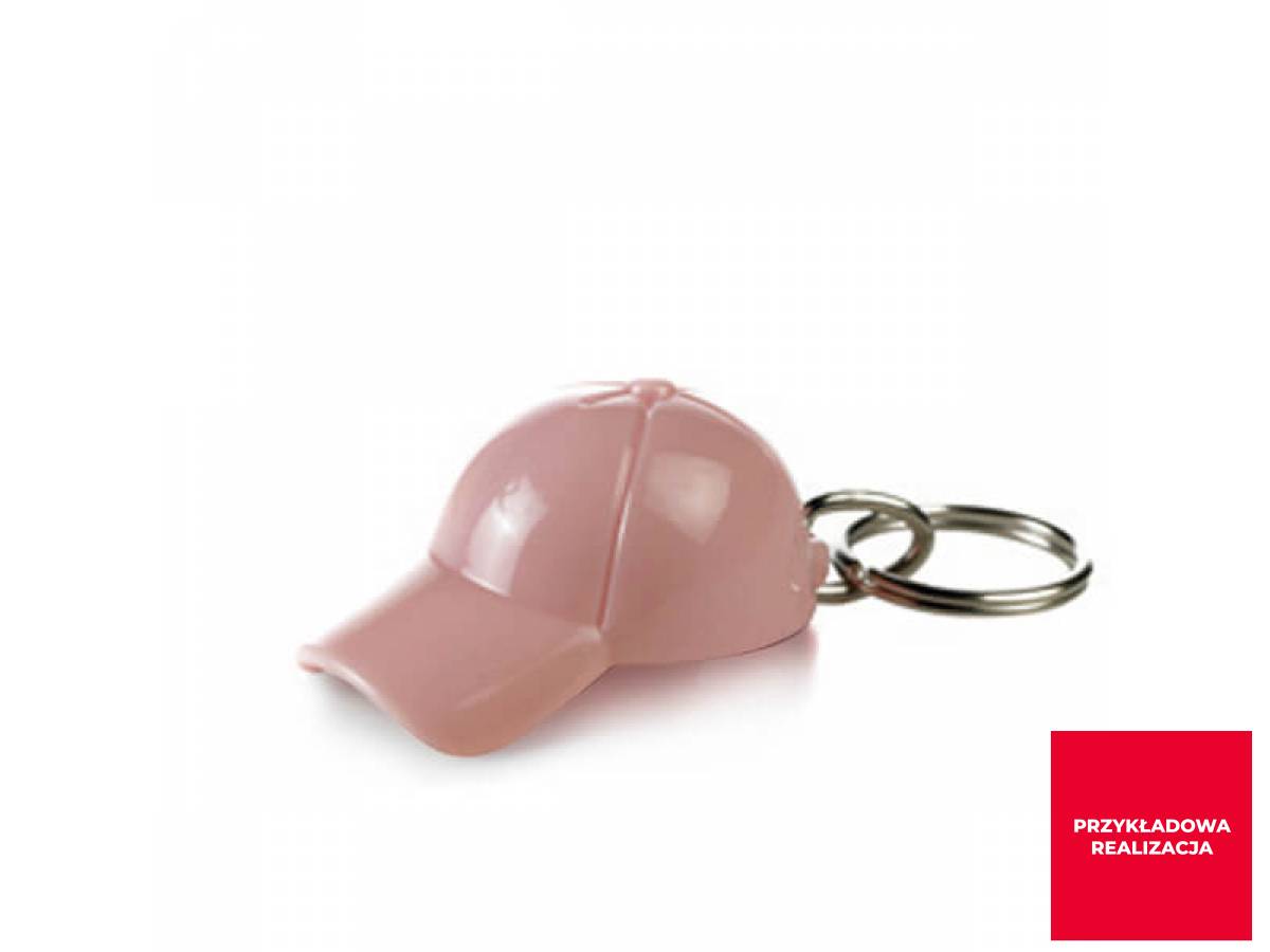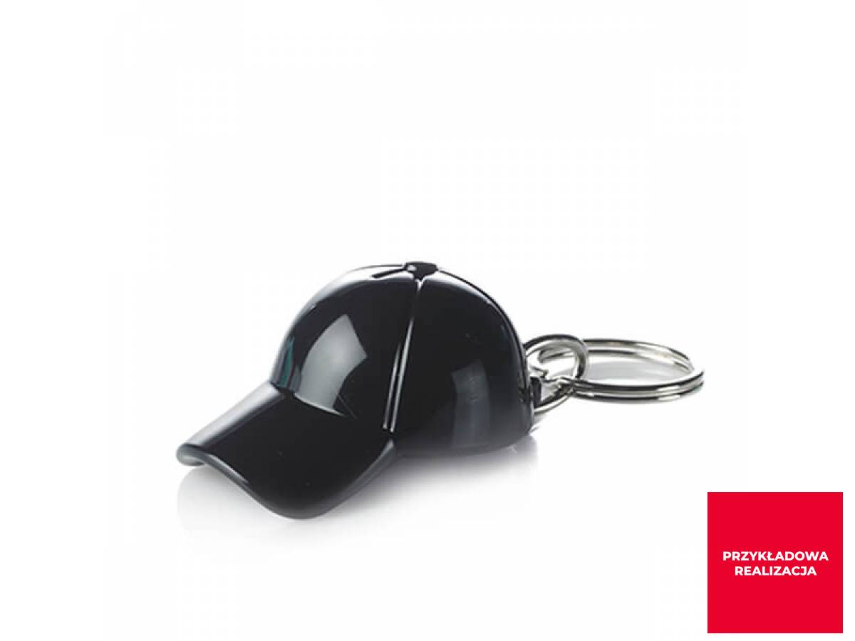 Brelok do kluczy w kształcie czapki z daszkiem. Z dowolnym nadrukiem lub grawerem