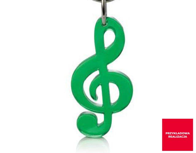 Zrobiony z tworzywa akrylowego, brelok w kształcie klucza jest doskonałym gadżetem dla branży muzycznej. Stworzony z solidnych materiałów, przez wiele lat nie utraci swoich kolorów. Umieszczony jest na metalowym, stworzonym z mocnego materiału kółku, wytrzymującym o wiele większe obciążenia.