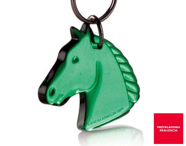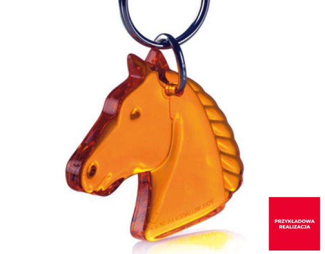 Brelok w kształcie głowy konia, to idealny kształt w akcjach marketingowych. Dzięki możliwości naniesienia personalizacji, możemy okraszyć go swoim logiem. Stadniny i hodowle mogą go rozdawać swoim klientom. Jest to także fajna forma bonusu do biletu, dodawana do wejściówek na wyścigi konne czy Gran Prix. Sam kształt konia z pewnością będzie zdobił nasze klucze, co najbardziej spodoba się najmłodszym.