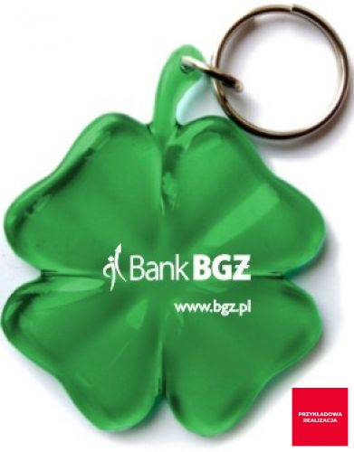 Czterolistna koniczynka od zawsze kojarzona jest ze szczęściem. Ten który ją znajdzie, powinien już zawsze chodzić uśmiechnięty. Dlatego też warto mieć ją zawsze przy sobie, przykładowo plastikową, przyczepioną do kluczy! Jak dołączymy do tego praktyczność w postaci miejsca na swoją reklamę, to chyba już bardziej nie trzeba naszego produktu reklamować.