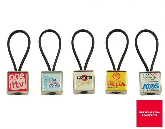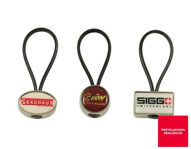 Brelok metalowy wykonany ze stopu cynku z gumową obręczą na klucze oraz miejscem na naklejkę 3D. W standardzie brelok jest niklowany ale możemy wykonać również powłoki chromowaną, srebrną oraz złotą. Dzięki obręczy na której osadzony jest brelok, poza kluczami, przypniemy go również do innych rzeczy. Dostępne są różne kształty.