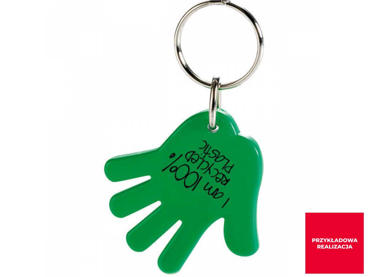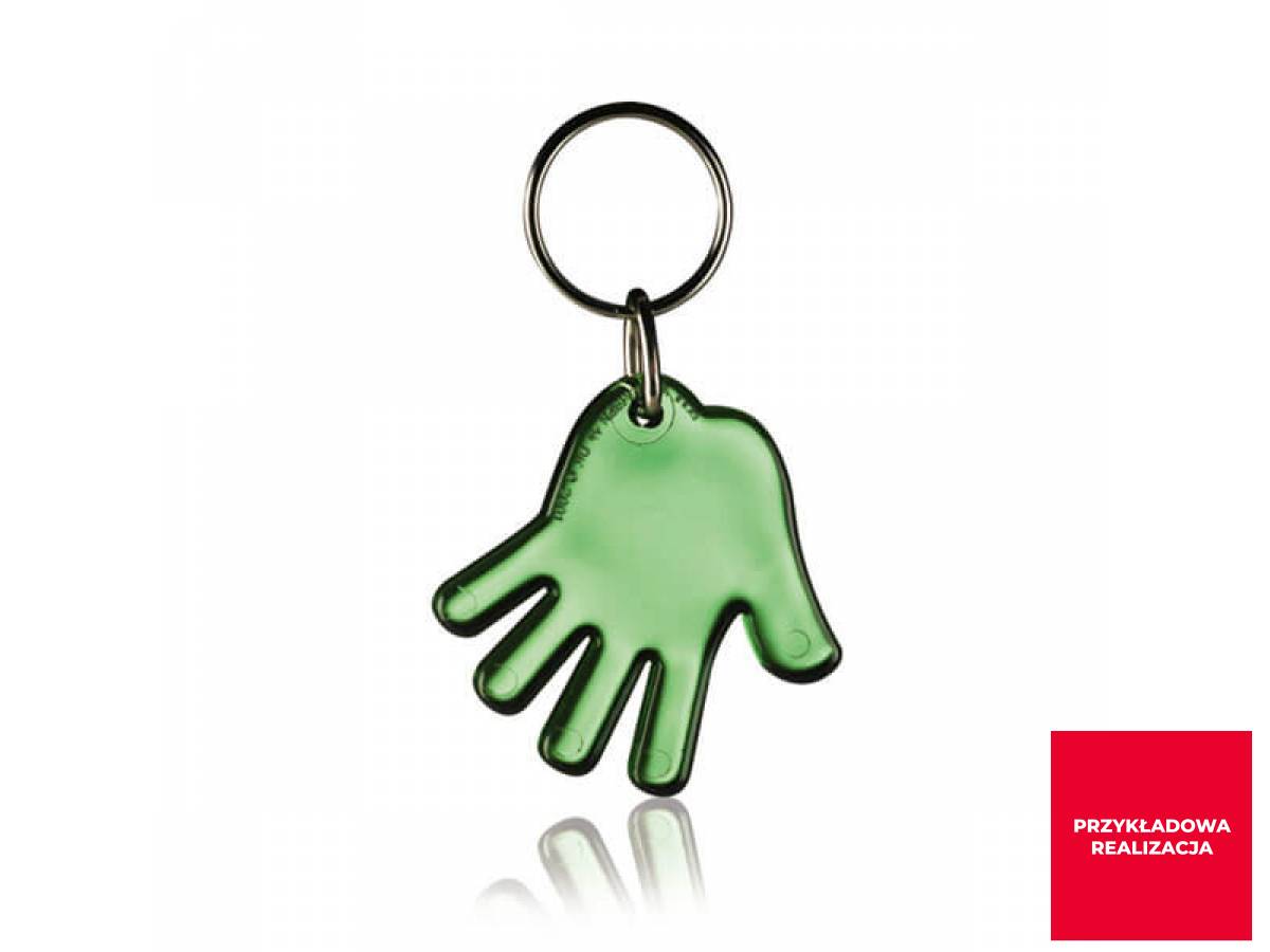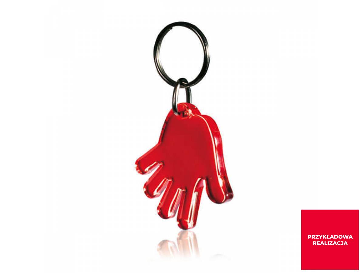 Breloczek do kluczy w kształcie ręki. Dostępny w kilku kolorach. Z dowolną grafiką