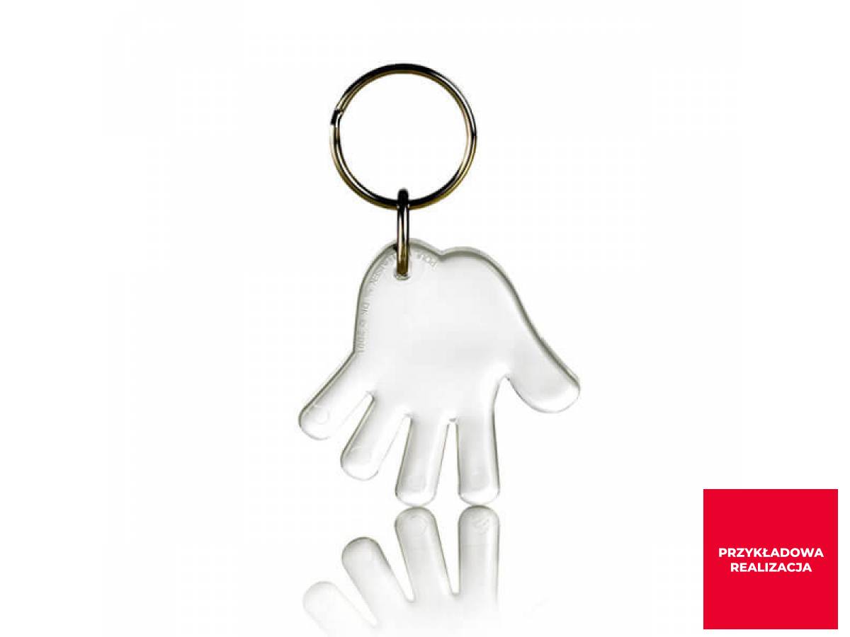 Ręka z solidnego szkła akrylowego w formie breloka. Użyj jej do swojej akcji marketingowej jako drobny upominek. Naniesiemy Twoje logo