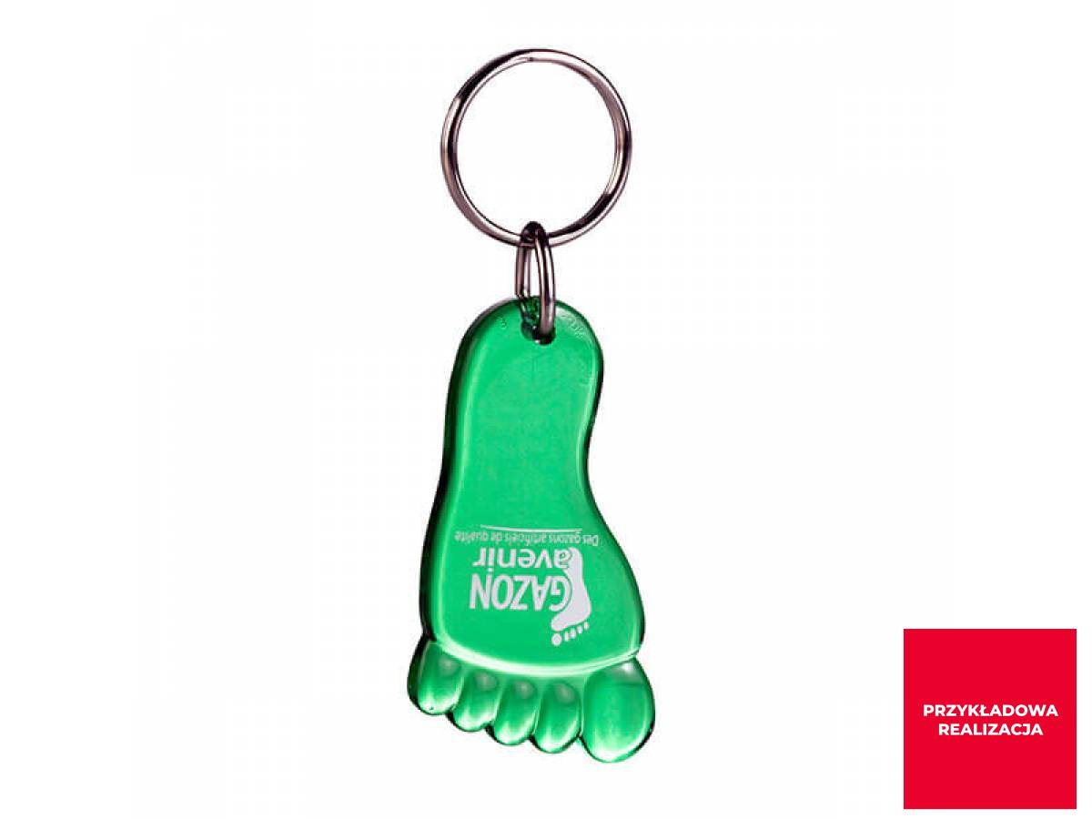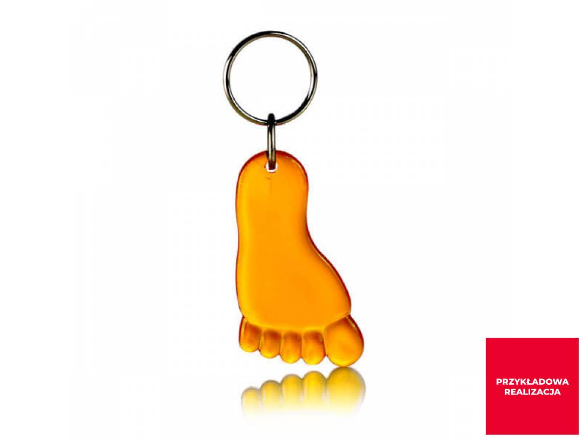 Brelok do kluczy w kształcie stopy. Z wysokiej jakości tworzywa PMMA. Z dowolną grafiką