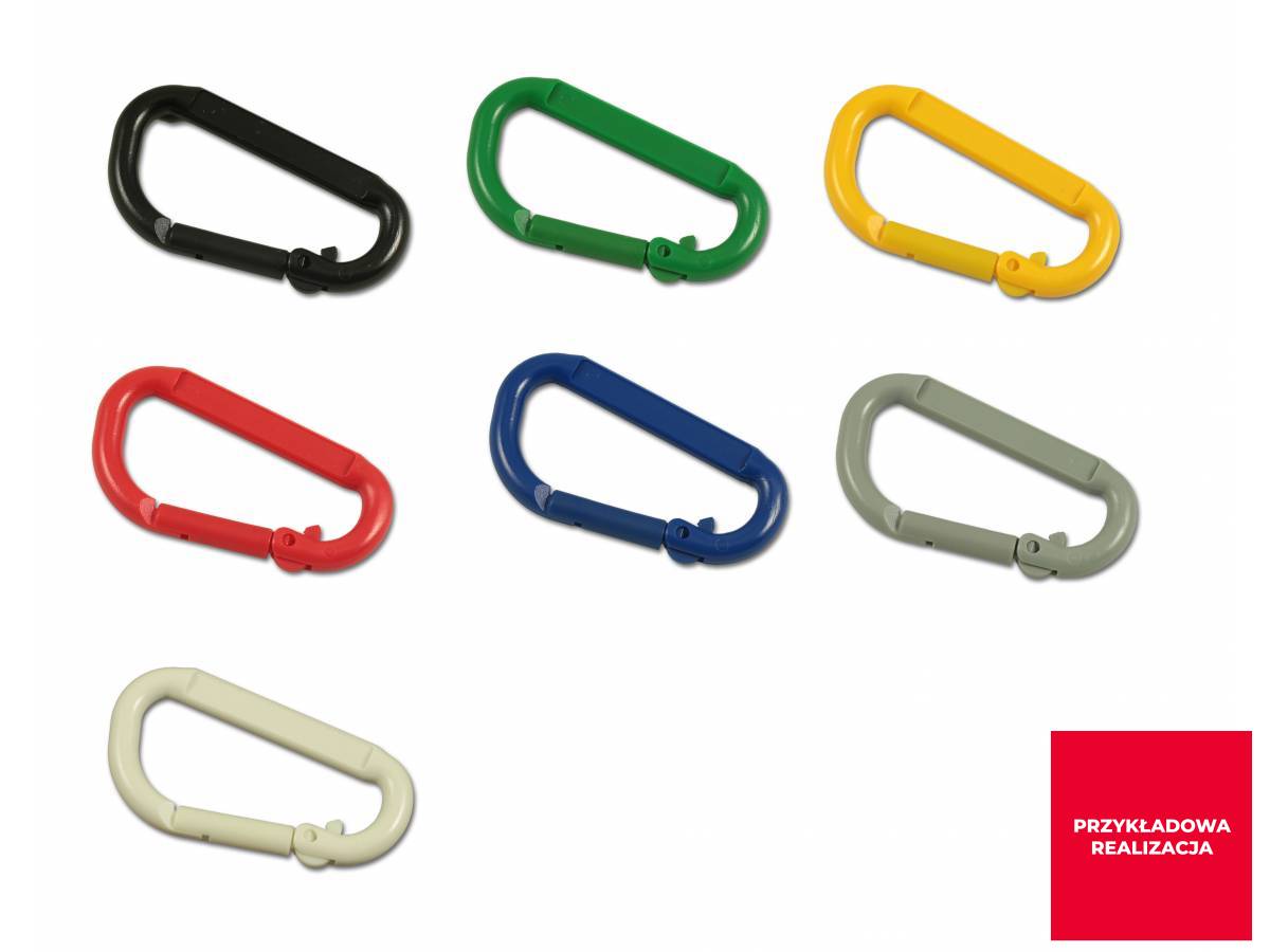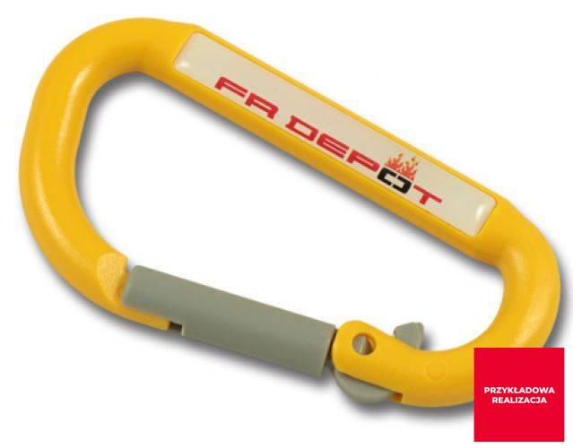 Brelok karabinek do kluczy w przystępnej cenie. Jedyny taki brelok na rynku ze śrubą i sprężyną. Konstrukcja z bardzo wytrzymałego plastiku – utrzyma nawet 100 kluczy! Naklejka epoksydowa pozwala na zastosowanie nadruku logo full color. Możliwa opcja ze smyczą z dodatkową naklejką epoksydową oraz uchwytem na butelkę i również dodatkową naklejką epoksydową.