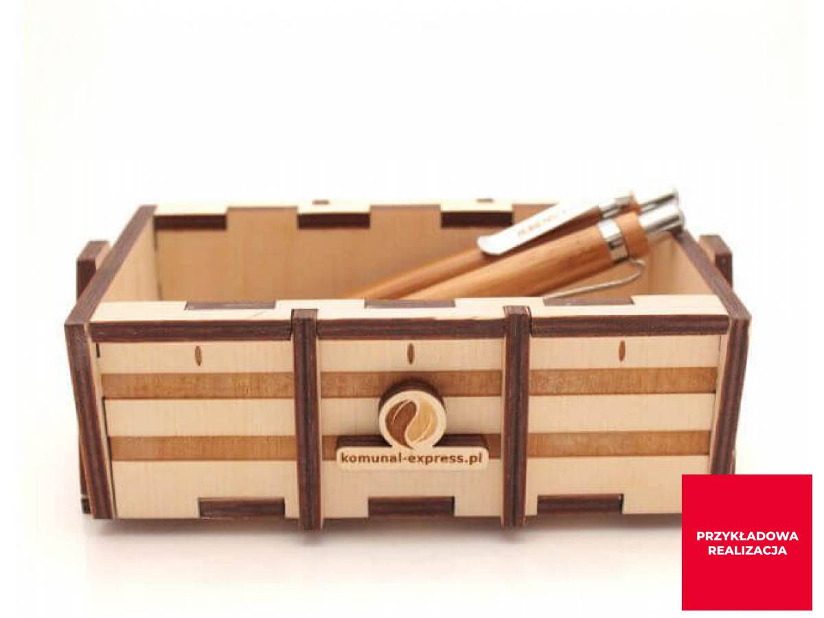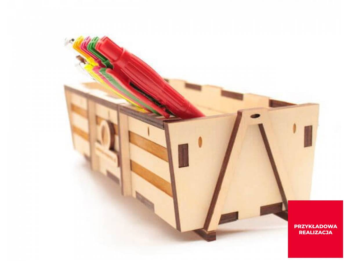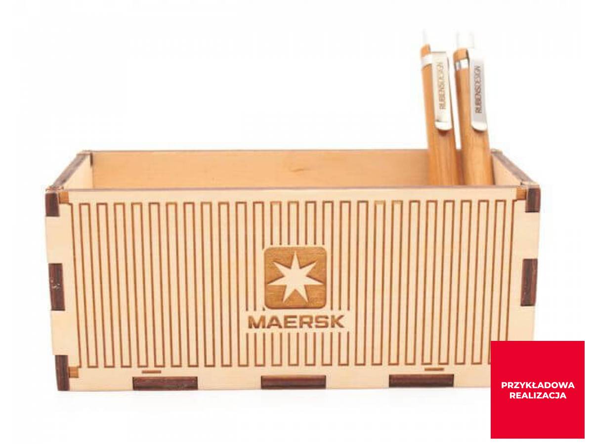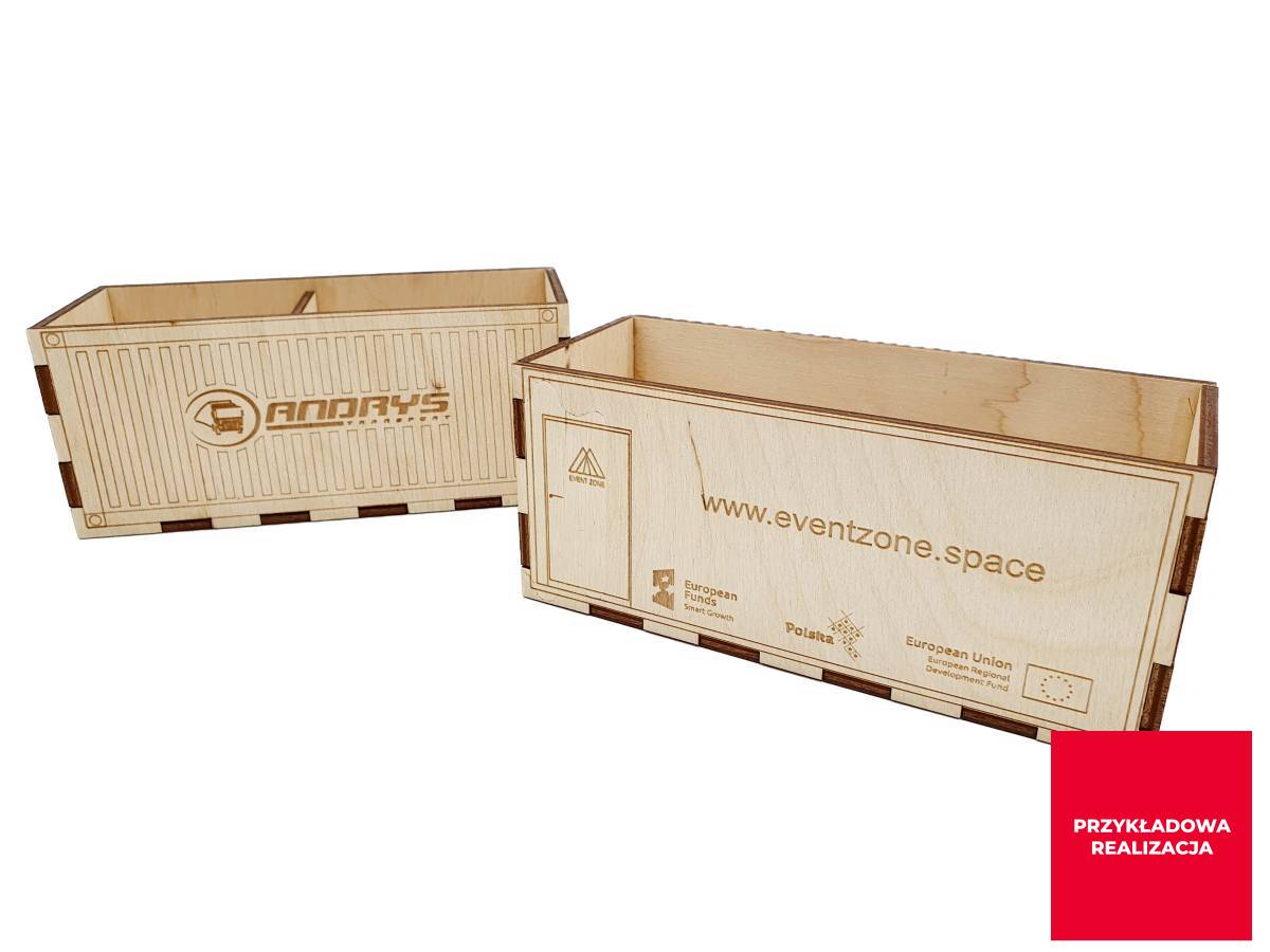 Drewniana replika kontenera, to idealny gadżet dla każdej gałęzi przemysłu przewozowego. Służące w biurach firmowych, jeszcze bardziej oddadzą ducha naszej marki. Szczególnie że możemy ich używać zarówno jako koszyczków na przybory takie jak długopisy czy inne niezbędne w biurze narzędzia, a nawet jako małe śmietniczki, na nieco mniejsze odpady! Na kontenerku wykonamy dodatkowo grawer, z logiem bądź hasłem Twojej firmy. Również kształt nie jest rzeczą nienaruszalną. Możemy stworzy kontener o dowolnym kształcie i z dowolnym grawerem, by jak najbardziej emitował ten, którymi przewozi się paczki w Twojej firmie.