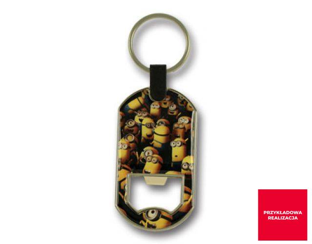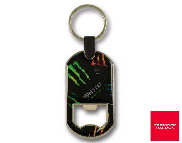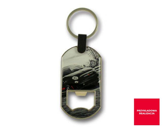 Ekskluzywny odlewany metalowy brelok otwieracz do butelek z największą powierzchnią reklamową przeznaczoną na naklejkę 3D bądź nadruk lub grawer. Wykonany z wysokiej jakości stopu cynku. Platerowany wybraną przez klienta powłoką.