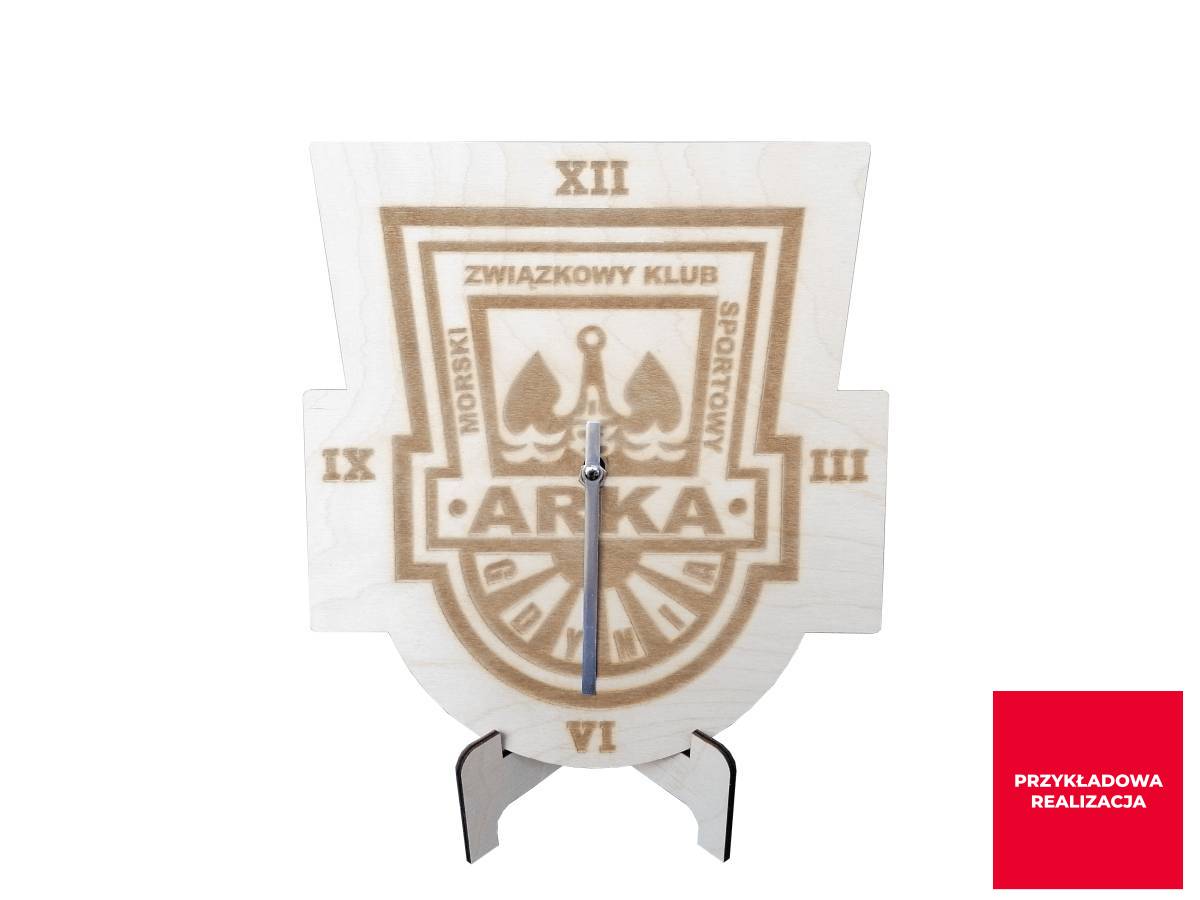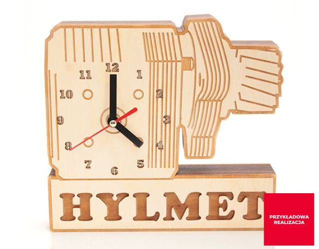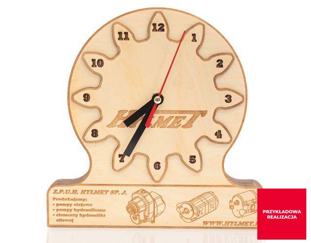 Zegar drewniany wykonany na zlecenie według projektu klienta. Wykonany z najwyższej jakości klejonego dębu. Jest to wyjątkowy gadżet firmowy. Dla produktów z drewna nie przyjmujemy minimalnej ilości zamówienia.