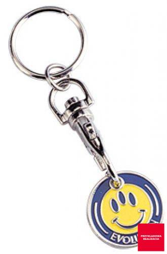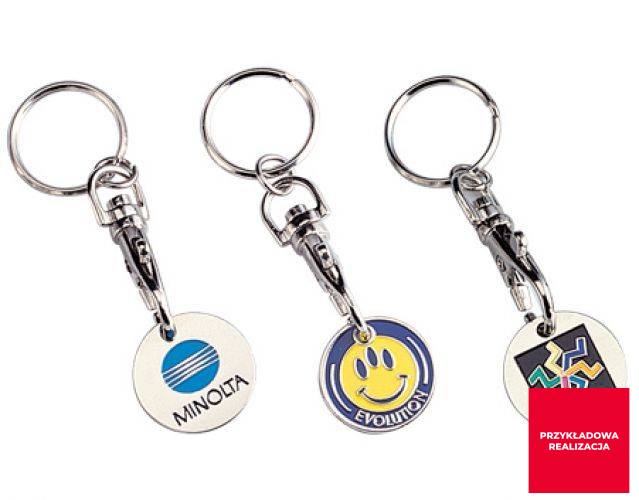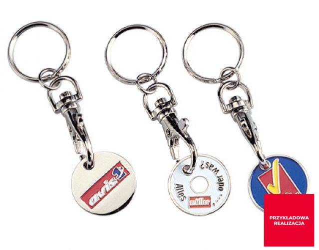 łatwo się wpina i wypina. Brelok z żetonem metalowy 2D (płaski), znakowany farbą emaliowaną, może posiadać dowolnie zaprojektowaną grafikę. Doskonalesprawdza się w codziennych zakupach.